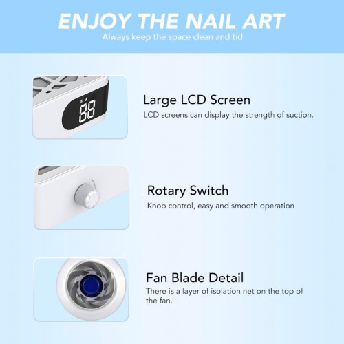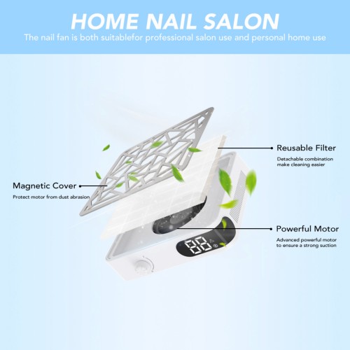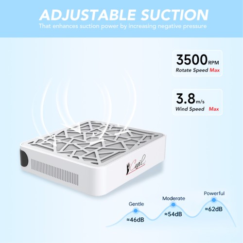 Die Absaugung ist mit einem Mehrschicht Luftfilter ausgestattet, der Nagelstaub effektiv zurückhält und für eine sauberere Raumluft in Ihrem Studio sorgt.