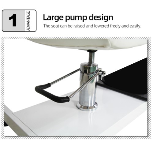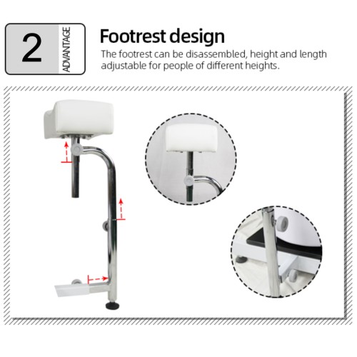 Zu jeder Zeit können Sie die Höhe der Fußstütze oder Sitz einstellen, für den Komfort Ihres Kunden oder auch Ihren eigenen Komfort.